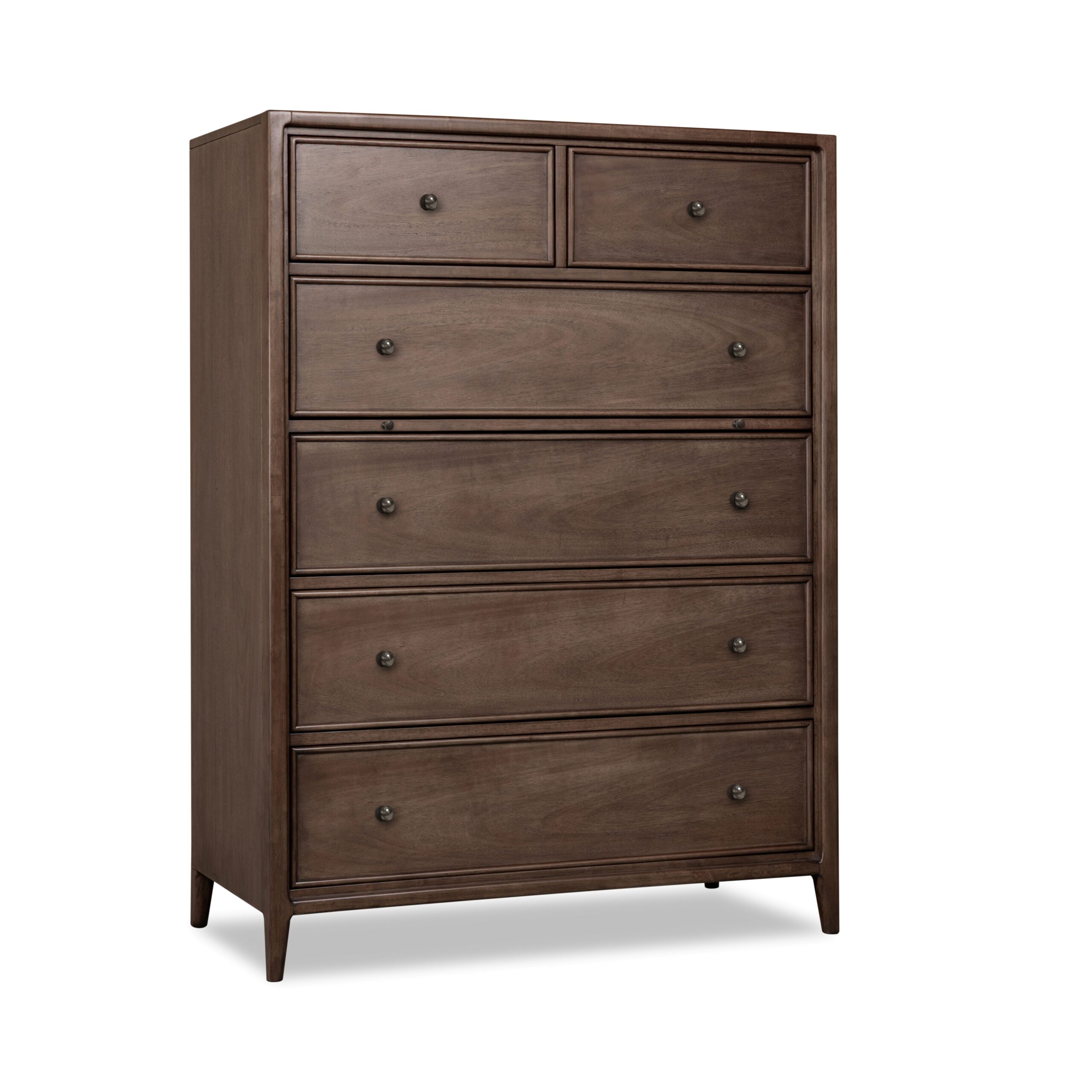 The Sonoma group is crafted with lovely mango wood veneer, highlighting its one-of-a-kind grain and vibrant colors. With a warm pecan finish that brings out the soft edges, pencil moldings, and cheerful tapered legs, this chest perfectly combines modern elegance with a cozy, familiar feel.